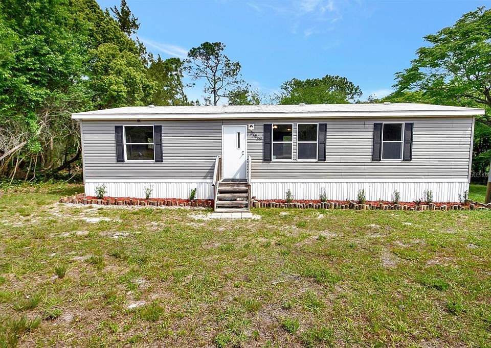 Live in a Country Setting! 1 Acre with a 2020 Nobility Manufactured home has 3 bedrooms, 2 baths, custom nursery room hand painted along with an Island Kitchen and concrete kitchen countertops. New Well Pump and A/C installed 2/2024. It also comes with a 40' X 20' concrete pad, metal shed, insulated chicken coop with poly deck flooring, TV, Night Owl Security System with 4 cameras and a monitor. No Homeowners Association.