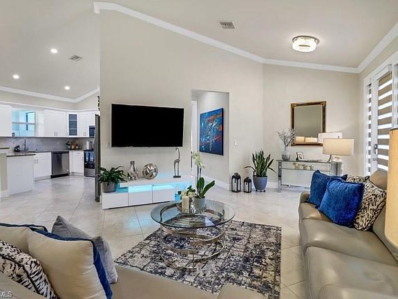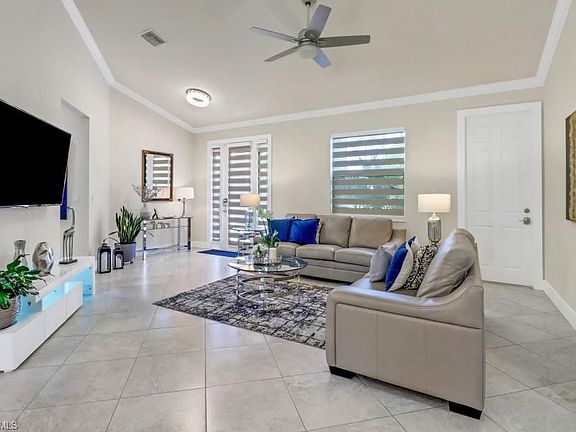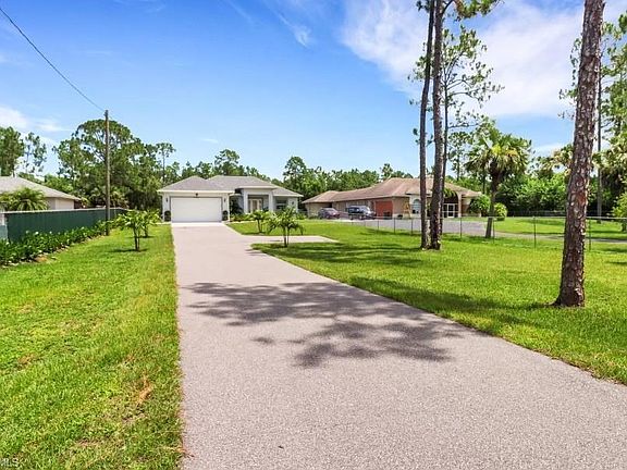Welcome to this stunning residence, nestled in the highly sought-after Golden Gate Estates! This exquisitely designed home is the epitome of modern living, situated just minutes away from the Everglades Square Plaza. Featuring 3 bedrooms, 2 full bathrooms, and a generous 2-car garage, this 2022-built property is move-in ready and in impeccable condition. The home is equipped with a host of amenities, including security cameras, fenced on both sides, an outdoor kitchen within a screened lanai, and a surrounding sidewalk. Inside, you'll find exquisite lighting fixtures, all windows covered with contemporary custom shades, and a spacious kitchen with stainless steel appliances. The fully cleared lot provides a vast canvas for you to create your own private sanctuary. Don't miss out on the opportunity to make this exquisite property your own!