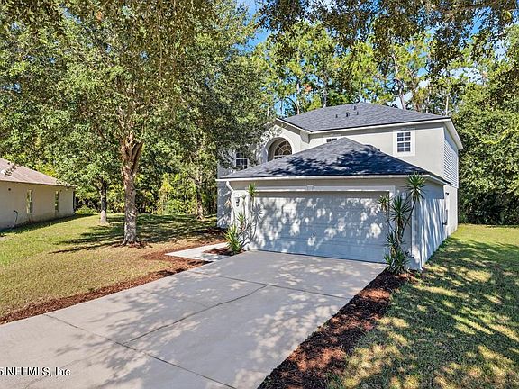 Welcome to this move-in ready Northside Jacksonville home with a brand-new roof! Featuring 4 bedrooms plus a flex room, this spacious residence offers plenty of room to spread out. The two-story entryway fills the home with natural light. The large kitchen includes a center island, stainless appliances, double pantry, and eat-in space, plus extra storage under the stairs. Downstairs offers living room, formal dining and a flex room ideal for guests, an office, a playroom, a music room or home theatre. Upstairs, the owner's suite features a double closet and separate tub and shower, with hardwood-style flooring throughout—no carpet! Step outside to a covered patio overlooking a private, wooded backyard, perfect for relaxing or entertaining. Recent updates, including the new roof and freshly painted interior, add peace of mind and value. Located on a quiet cul-de-sac near shopping, dining, and Northside destinations.