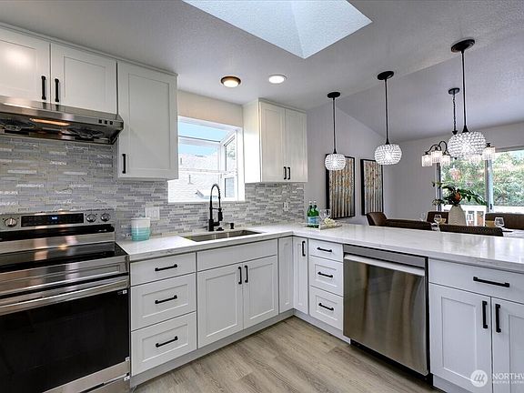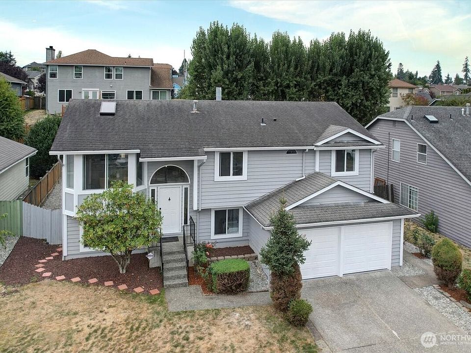 Beautiful remodeled home With all the right touches, bright open entry. Upstairs features lovely kitchen with large bay window, skylights, New appliences and new quartz countertops. Private deck off dinning room over looking the back yard. 3 bedrooms upstairs, including a good sized master featuring on suit bath and walk in closet. Down stairs features an additional bedroom, 3/4 bath, and enormous family room that opens to back patio. New paint inside and out, new flooring, new washer and dryer ect... Enjoy low maintenance back yard with sport court, fruit trees, and lots of garden space! Come see for yourself!! You won't be disapointed.