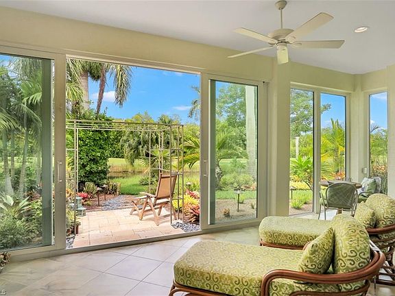 H.16284 - Discover this hidden gem in the ten home SPYGLASS POINTE enclave within gated Windstar on Naples Bay. Unmatched privacy on a 1/3 acre pie-shaped property with lush landscaping, winding paths and panoramic views of a pond and golf course. The main house, a guest casita and outdoor kitchen/bar cabana wrap around a 1,300 SF screened patio, pool & spa. This unique courtyard design provides seclusion for sun & shade and is ideal for family gatherings and entertaining. The casita provides flexible space for guests, an office or hobbies. The NEW gourmet kitchen boasts Miele & Bosch appliances with double ovens, induction cooktop, quartz counters & custom cabinetry. Tile & wood floors, plantation shutters, select cypress ceilings & spacious walk-in master closets make this special home even more inviting. Windstar offers a shuttle boat to Keewaydin Island/Gulf beaches, walking/bike paths, available Club memberships with 18-hole golf course, tennis courts, fitness center & bayside restaurants. Windstar's Southpointe Yacht Club and Marina has 72 deeded boat slips with availability & no bridges to the Gulf. Naples Botanical Gardens and 50 pickleball courts are less than a mile away.
