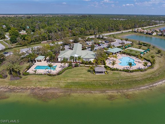 Located on a corner lot and situated to where you can enjoy your screened lanai with a beautiful landscaped area and a lake view. This 3 BR home is ready to welcome new owners and is ready to move into. With a brand new tile roof, there is no need to wait for new construction as this 2010 build offers no carpet, all tile and laminate flooring throughout. New stainless appliances and granite countertops with a breakfast bar complete the kitchen that overlooks the living room making it perfect for entertaining. Off the kitchen leading to the 2 car garage, you will find your in residence laundry room complete with a washer/dryer. The spare bedrooms are on the opposite side of the home from the master giving everyone room for privacy. Aluminum fenced yard which is perfect for pets. This community offers 2 community pools, 18 hole championship golf course, restaurant, fitness center, bocce ball, pickleball and more. This home is fully furnished and the furnishings are only 3 years young, so if you are looking for ease, this is the home for you. The community is conveniently located off of 41, giving you easy access to shopping, dining, downtown Fort Myers, Cape Coral, and even Punta Gorda.