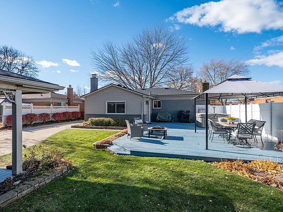 Updated ranch located on a quiet cul-de-sac in Warren. This 3-bedroom, 1-bath home features LVP flooring throughout the entry level and finished basement, custom wainscoting in the dining room and stairway, and fresh paint on the main floor with new bedroom doors. The spacious family room offers vaulted ceilings and a cozy fireplace, while the open-concept kitchen and formal dining room create an ideal flow for everyday living. The kitchen was fully remodeled in 2021 with new cabinets, granite countertops, a coffee bar, and a stylish tile backsplash. The bathroom features ceramic tile flooring. The basement was professionally waterproofed in 2025 with a transferable warranty and offers generous storage space along with a potential 4th bedroom. Outside, the private, fenced backyard is beautifully landscaped and includes two decks—one covered by the extended roof of the detached 2.5-car garage. Major updates include a complete tear-off roof replacement on the home and garage in 2021, a new garage door and opener in 2023, and a newer furnace and AC (2019). Move-in ready with thoughtful updates throughout!