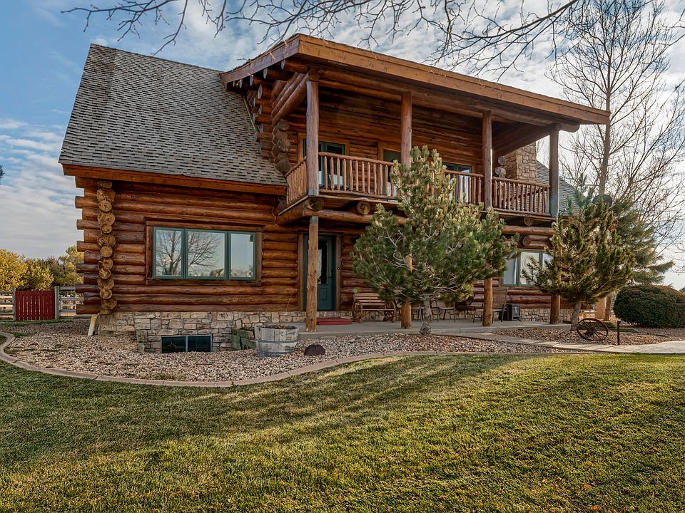 Welcome to this gorgeous custom log home situated on an amazing 2.64 acre corner lot in Windsor! The property offers breathtaking mountain views and is situated in a quiet subdivision with only 20 homes and no further building or expanding available. You will love the insulated and heated 1,300 square foot shop with concrete parking, an RV door and a storage area. Handsome hardwood floors and soaring ceilings with wood beams and custom carvings welcome you into the home. The beautifully updated gourmet kitchen boasts stainless steel appliances, tile floors, a farm sink, tile backsplash and a center island with a gas range and breakfast bar. Escape to the master suite that features a walk-in closet and a luxurious master bath with a soaking tub and walk-in shower. The loft upstairs is host to a pool table, wet bar and cozy fireplace. Downstairs expands the living space with three bedrooms and a second laundry room. Enjoy the Colorado outdoors from the lovely back yard patio with a large seating area and grilling area that’s great for entertaining. The property offers a fenced in area for pets along with a built in dog door. Additionally, the home features a freshly stained exterior and a new class 4 impact resistant roof. Come see this incredible home today!