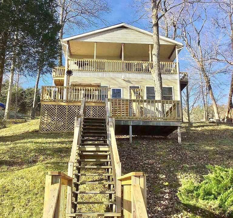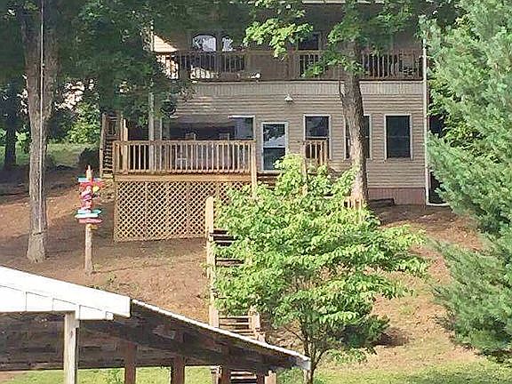 Waterfront home with many updates on two lake lots with deep water. Three season porch on lower level and wrap around porch on upper level. Main living area with LP gas fireplace is open to the kitchen. Two bedrooms on main level with full bath and one bedroom on lower level with full bath. Large family room in lower level with sliding door to 3 season porch. Plenty of extra storage space with 2 large walk-in closets in lower level. Large laundry area/workshop in lower level with separate door opening to the porch. Additional storage shed by the lake for boating, fishing and yard equipment. Boat dock and lift.