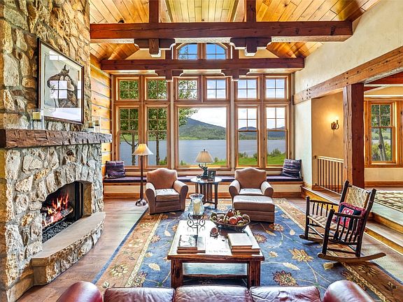 Luxury awaits you on the shores of Lake Catamount, Colorado’s largest private lake. This property is 1 of only 10 lots allowed to have your own boat and dock. An exceptional opportunity to acquire the developer’s preferred lot, encompassing 35.02 acres. A distinguished retreat located at the end of a private drive on More Lane, providing peace and serenity, with the best view available in our valley. The home features classic design, impressive post and beam construction, and western charm with remarkable attention to detail. The interior features authentic craftsmanship and an open floor plan for easy entertaining. The gourmet kitchen was designed to mimic the Napa Valley experience and is surrounded by custom cabinetry by local artisan- Rich Tucker. The home is intended to serve as a space for gathering, fostering meaningful interactions, preparing exceptional meals, and enjoying fine wine with loved ones. Each room throughout the residence features numerous windows and breathtaking lake and mountain views. The primary suite on the main floor features a private patio, custom rock fireplace, and floor to ceiling windows allowing for gorgeous sunsets over the lake. Adjacent to the sleeping quarters is a walk-in dual dressing room, complemented by a luxurious custom marble 5-piece primary bath. There are several office spaces, and all four additional bedrooms are en-suite, with one junior primary on the main floor. Each floor of the home opens to manicured outdoor spaces with lakefront views. Additionally over the garage are separate living quarters. A regulated Bocce ball court is located at the rear for extended recreational activities, while a private dock with boat access complements the array of custom stone patios, hot tub, fire pits, fireplace, and dining areas that encircle the residence. Situated within the prestigious Lake Catamount Development, this home represents a rare and unique opportunity that cannot be duplicated in the current market.