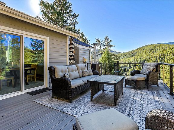 Sun-lit and sparkling – that’s how to describe this delightful remodeled home. From the stunning remodeled kitchen to the new decks surrounded by aspens and mountain views, this home will meet your your every need and fill your spirit. Modern upgrades completed with quality and thoughtfulness abound here. Step inside the new custom glass front door to wide-plank acacia hardwood flooring and a light, airy feel to the house. The kitchen is truly a stunner, just completed in 2022 with high-end cabinetry, quartz counters, bar seating, gas stovetop and even new skylights. It’s open to the vaulted living room with gas fireplace and plentiful windows – it’s the ideal set-up for today’s living. You will find amazing views from almost every room via the new windows throughout the house. Step outside to the new deck—a private, spacious haven built with top-grade materials—perfect for morning coffee, evening dinners, or simply soaking in the gorgeous views and tranquil setting. You will love the outdoor living here! The primary suite offers more views, an updated bathroom with dual sinks, and dual closets. An additional bedroom here with high-grade carpet makes the perfect office (high speed internet). Downstairs, you’ll find a charming family with new patio doors, a full bath, an additional bedroom, laundry room, and convenient access from the oversized garage. Every detail has been thoughtfully updated, including brand new windows and exterior doors. Paved driveway, natural gas and public water too! Located just moments from Maxwell Falls, national forest trails, and endless outdoor adventures, this home invites you to embrace the true Colorado lifestyle—while being just 12 minutes from Evergreen’s vibrant downtown, with its lakeside charm, shops, and restaurants. Lovingly cared for and filled with joy, this sunlit mountain home is ready to welcome you into its next chapter. Video, 3D and more at www.32857LittleCubRoad.com