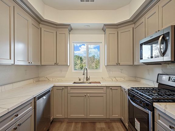 Finished two-car garageQuartz countertops throughoutOwned solarStainless steel appliancesWhole-house fanRecessed lightingSoft-close cabinetry