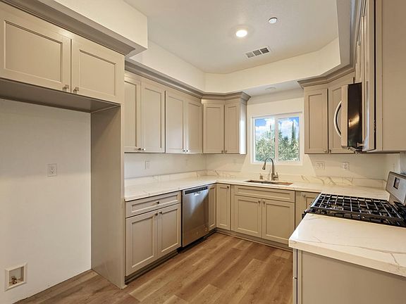 Here's your chance to own a brand-new construction away from the hustle and bustle of the city. Built in 2025, this home sits on 1/2 acre and features 3 bedrooms plus a versatile flex room ideal for a home office or optional 4th bedroom. Modern finishes include quartz countertops throughout, laminate flooring, recessed lighting, and ceiling fans with dimmers in every room. The open great room flows into a stylish kitchen with stainless steel appliances, a natural gas range, soft-close cabinetry, and ample storage. An indoor laundry room offers added convenience with cabinet and a utility sink. Energy-efficient features include OWNED solar, a whole-house fan, and a tankless water heater. Finished two-car garage. Located near the Calaveras River, Lake Hogan, and La Contenta Golf Course.