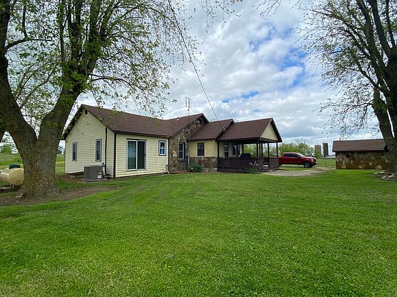 Country living and hobby farming at it's finest. This Beautiful Rock 3 Bedroom, 2 Bathroom home sits on 4 acres m/l fenced with open pasture just 1 mile from town. Home has many updates such as new windows, new flooring throughout most of the home, New Wood Burning Stove, New Sinks, New Well and Well Pump, New Roof, New Central Heat and Air Unit, New Refrigerator and New Water Heater. With all the new updates this beautiful home still has its historic charm. Property features a rock detached one car garage, chicken coop with water and electricity, large garden area, wood shed, storage shed, and a large 60x50 barn with a man cave inside measuring 19x40 with water and electric that is insulated and provides a wood barrel stove inside for heat. This is a one of a kind hobby farm offering all the convenience a person could want. Bring your animals and enjoy this beautiful property.