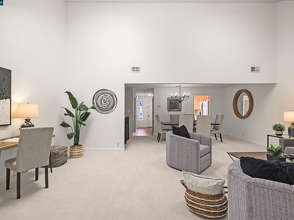 Rooms with a view! This beautiful, move-in ready 3 bedroom, 2.5 bath townhome offers a generous 1,720 sq. ft. of living space located in the highly sought-after Lakewood Village complex. Enjoy thoughtful updates throughout this sprawling floor plan that offers plenty of space and storage. On the main level, the bright, updated eat-in kitchen offers extended countertops and vinyl plank flooring. You will love the welcoming living and dining room space with soaring ceilings, new paint & carpet, modern lighting, brick fireplace and a serene balcony setting with private nature views. Downstairs, the generous primary bedroom suite features a walk-in closet, updated bath and a second private balcony with glimpses of Don Castro Lake. Two secondary bedrooms, an updated hall bath plus an oversized storage closet complete the downstairs. This home includes a detached one-car garage plus an assigned parking space right in front. Dedicated laundry room and updated half bath on the main level. Wonderful HOA amenities include a community pool, hot tub, sauna and gated security. This charming townhome is situated in a private and very low traffic area in the complex. Easy commute location with BART and Highways 580 & 880 nearby. Minutes from Don Castro Recreation Area.