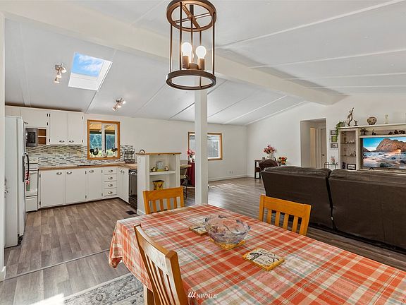 Enjoy serene country living on this one+ acre lot with well maintained manufactured home. Open concept living, dining room & kitchen create light & bright feel with vaulted ceilings & skylight. Brand new flooring & trim throughout! Kitchen offers tons of storage, tile backsplash, butcher block counters & peninsula eating bar. Primary bedroom with attached 3/4 bath. Two additional bedrooms & full bath complete the layout. Inside/outside living perfect for entertaining with sun room & patio. Conveniently located within minutes of Bellingham & Burlington. Lots of extra features include a wired in generator, tandem car detached garage, storage shed & 26x36 shop! So much space to enjoy gardens, fruit trees & wildlife!