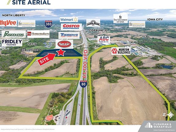 Commercial (Industrial & Retail Lots Available) land for sale and/or build-suit-available in the Tiffin West Development off of the I-80 & I-380 interchange. Ownership includes a licensed real estate agent in the State of Iowa.