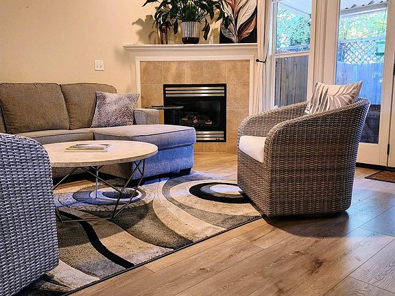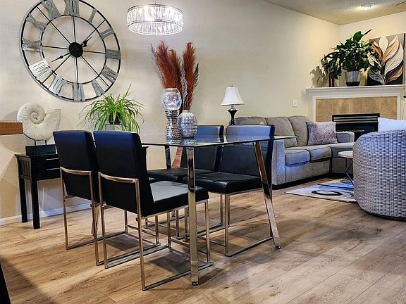 This cozy, low maintenance town home offers 2 bedrooms and 2 bathrooms in quiet neighborhood. Brand new exterior paint, newer LVP flooring and window blinds through out. 2 year old kitchen appliances and sink with updated backsplash. 2 year old gas water heater. Brand new window in spacious 2 car garage. Fireplace was inspected and cleaned in the winter 2025. HOA covers mow, snow and sprinkler maintenance. Located near services, restaurants, and shops.