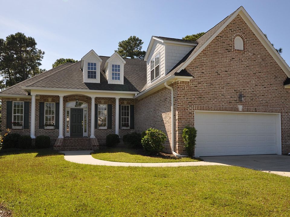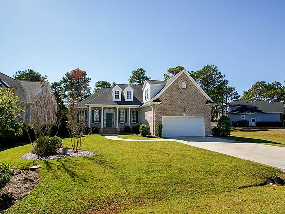 This popular all brick Logan Sanderling, is in one of the friendliest neighborhoods in St James. Close to the main gate, central to all amenities, and freshly painted to be move in ready. Striking 5'' solid hardwood floors on all major living spaces. Vaulted ceilings in the living room accent the fireplace & built in cabinet surround. Open yet formal dining room. Stainless appliances and a wealth of cabinet & counter space make the kitchen perfect for entertaining. Bright and open Carolina room opens to a generous three season porch. The master has abundant closet space, new carpet, double sinks, tub and standing shower. Two main level guest rooms on the opposite side of the house provide privacy and potential for a home office. Bonus room/4th bedroom has a full bath.