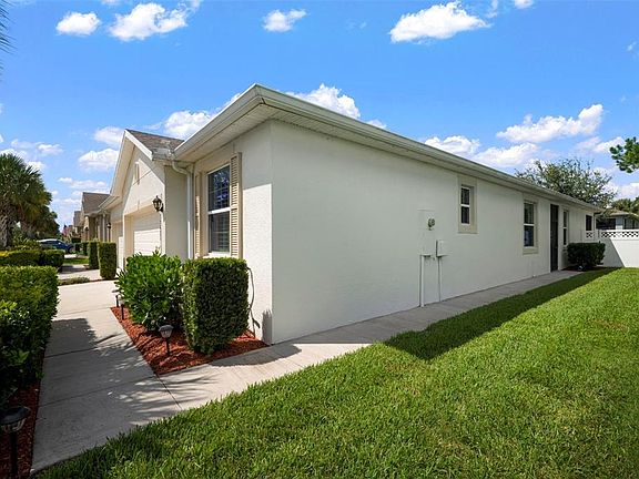 Enjoy low-maintenance living in this upgraded end-unit villa with the HOA covering your roof, exterior paint, pesticide services, irrigation and lawn maintenance! Inside you’ll find granite countertops in the kitchen and bathrooms, plantation shutters, upgraded fans and fixtures, a stylish kitchen backsplash, and vinyl flooring in the bedrooms. The master closet is custom built, the garage has overhead storage, and the fenced backyard with a screened-in back porch is perfect for relaxing. Plus, enjoy the convenience of a water softener and reverse osmosis filtration system. The Watergrass community has it all—3 pools, fitness center with playroom, tennis courts, dog park, splash pad, and a clubhouse you can rent for private events. Families will appreciate the on-site elementary school and golf cart friendly community. Live close to it all—Publix, Starbucks, and Chick-fil-A are under a mile away. With the new I-75 entrance on Overpass Road, The Grove, Wiregrass Mall, and Tampa Premium Outlets are just a short drive! Don’t miss the chance to call this home yours!