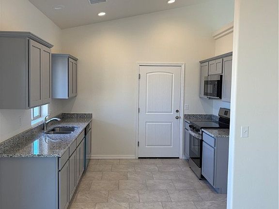 Model of 1175 square foot new 2x6 construction home with synthetic stucco and tile roof with double-pane windows. The front yard is fully landscaped and has an RV gate access to the back for storing your travel home, boat... The home is set up with electric heating system, range, water-heater and electric cooling system that will keep you comfortable all year around. The 3 bedrooms 2 bathrooms 2 car garage is perfect in the inside, the kitchen has granite counter tops and stainless steel stove, microwave and dishwasher. The open floor plan is perfect for entertaining guests and the vaulted ceilings create a wonderful open space. The home is accented with nickel fixtures in both lighting and plumbing. The carpet in all the bedrooms make for cozy feel but tile is placed through the kitchen, dining room, hallways and bathroom for a more elegant look, walk- in shower in master bathroom, walk-in closet in master bedroom and in the second guest bedroom. 2 year Builder Warranty. Estimated completion date is Dec 20th. (all pictures are similar and colors and some other items may be different).