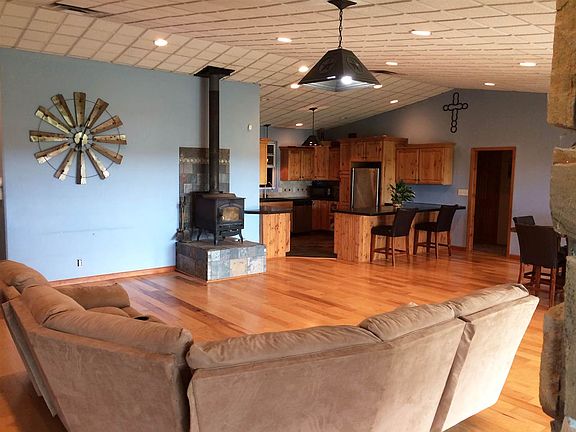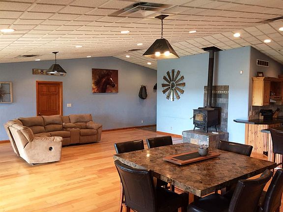 Come out & see a gorgeous acreage with everything you could want for a small cattle/horse set up! Pens, round pens, a large 55x40 building for working w/animals. Pond & completely fenced area w/round pen. New roof, newer windows, newer electrical, wrap around porch, new bar in tv room. Beautiful open floor plan. Unattached two stall garage.