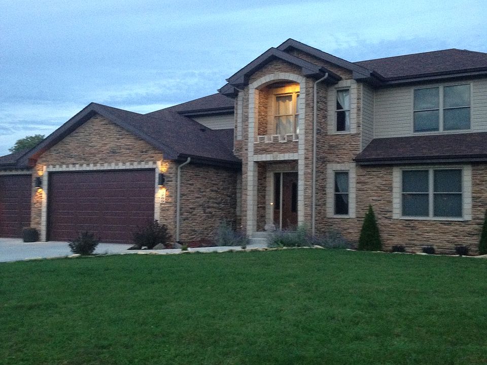 Limestone / Herscher school district! Open concept floor plan with 5 BR, 2.5 bath with the large master suite on the 1st floor. You'll love the warm, open space of the great room with 17' ceilings, Oak wood floors with custom cherry finish, fireplace with remote. Large open kitchen boasts SS appliances, eat at island, large pantry, dining room and plenty of cabinet space. Master suite with a coffin ceiling includes large walk in shower with a seat, whirlpool tub, double glass vanity sinks, large walk in closet. 4 seasons room with a full wet bar and plenty of windows for stunning views of the pool and yard landscaping. Full basement partially finished with another family room, game room, office, 2 storage rooms an open area, lots of lighting and pre-plumbed for a bathroom. Three car attached garage with a large bump out work space, and storage cabinets. Beautiful yard, the backyard has a large covered porch, large deck across the back of the house with a 30' semi inground heated pool. Dog run that is fenced in with dog doors into the home. Amazing space!