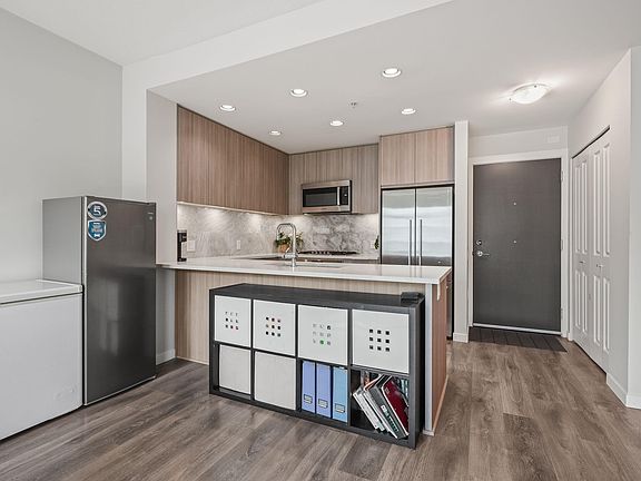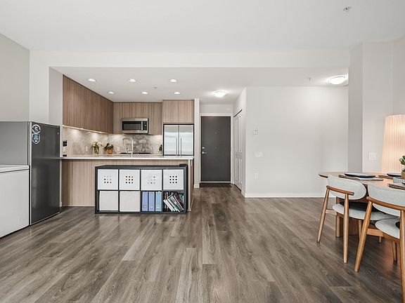 Welcome to R+R by Polygon! This beautifully designed unit features a large, open-plan living and dining room that opens out to north-facing balcony views, adjoining a modern gourmet kitchen equipped with high-end appliances, a Bosch gas cooktop and oven, polished quartz countertops, and an expansive island that is perfect for entertaining. The primary bedroom offers a luxurious ensuite and a walk-in closet with organizers. Interior highlights include IN-FLOOR RADIANT HEATING! Ideally situated in Vancouver's newest family-oriented and waterfront community, THE RIVER DISTRICT; with an assortment of boutique shops, services and restaurants with an open-air feel of streets and plaza.3-6-10 Warranty. Future Community Center and elementary school. Comes with 1 parking.