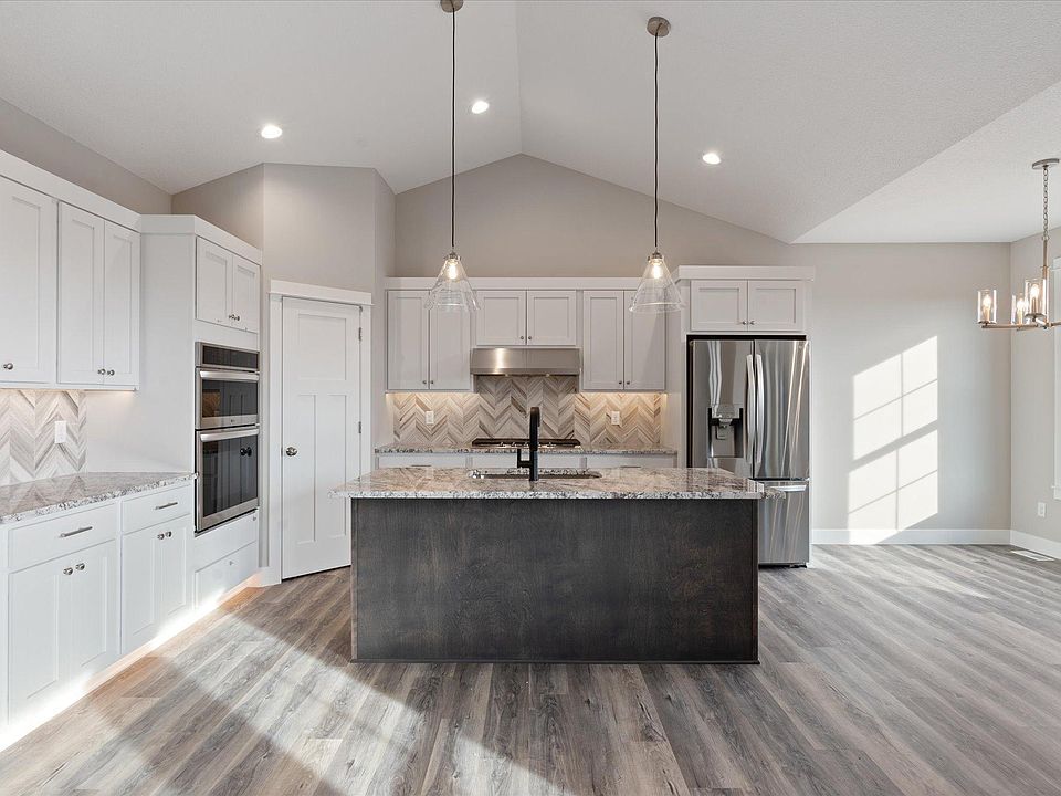 Large stone fireplaceOpen concept designQuartz countertopsSpa like retreatWalk in pantryUpgraded cabinetryDecorative tile backsplash