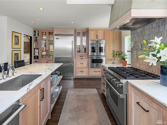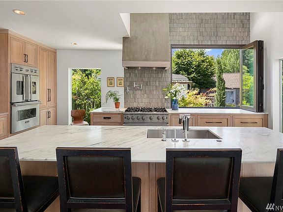 The Treehouse atop Madison Valley, full renovation completed in 2017. Entertainer's dream, Striking Viking Chef's kitchen with 36" Range, double oven & 36" Refrigerator. Great Room overlooks Lake Washington & Downtown Bellevue, views from every room. All TV's to stay. A/C, 1.5 car garage with 2 additional parking spaces.