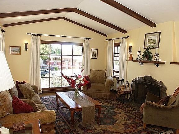 Serene light-filled spaces & lovely period details characterize this elegant Spanish-style home. Wood floors & formal entry, cathedral ceilings & stone hearth fireplace in living room. French doors open to formal dining room, chef's kitchen caters to today's lifestyle w/casual dining area offers direct access to the sunny rear yard for year round enjoyment.
