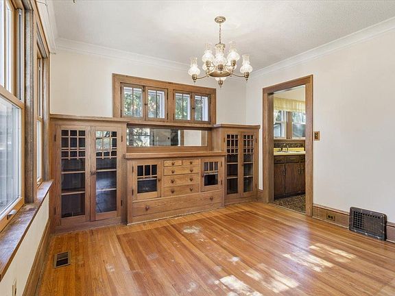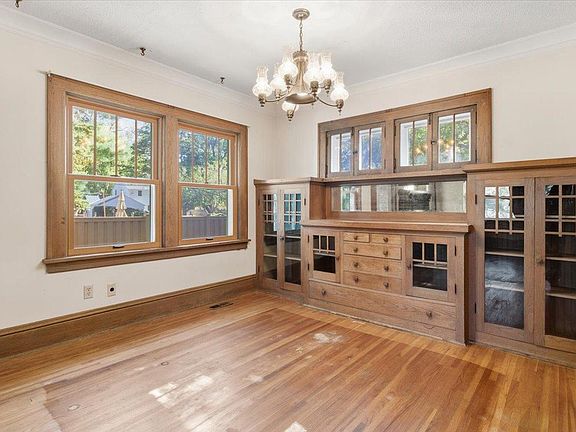 Gleaming hardwood floorsBrick fireplaceGreat bonesCoved ceilingsExtra-large city lotBuilt-in buffet