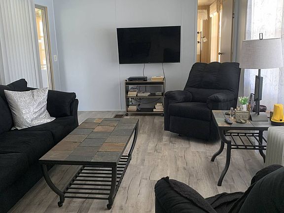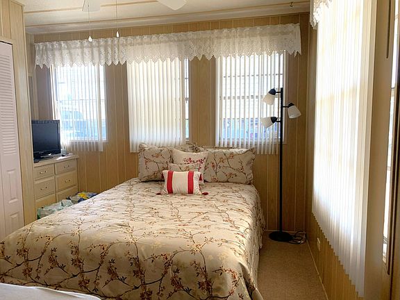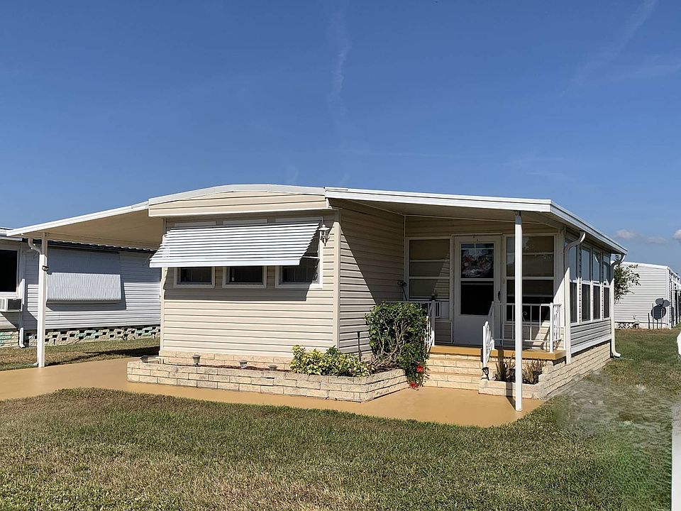 Welcome home to this spacious single wide with an attached enclosed sun room! The sun room is very bright and is a perfect place to sit with friends and visit. Roof and floors are 3 years old, The home has a split floor plan with a large living room and kitchen area, the primary to the front of the home with a bathroom that has a step in shower. The guest bedroom is at the back and right next to the guest bath with a tub/shower combo. Lots of cabinets and closets and a storage shed under carport with washer & Dryer.