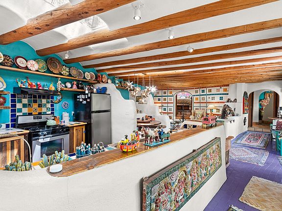 This quintessential Santa Fe adobe offers 2 bedrooms, 2 full baths both ensuite. Fully furnished Santa Fe charm, with enclosed private courtyard, walk to Canyon Rd, shops, museums, galleries and amazing restaurants. Open floor plan, fully equipped kitchen with excellent light throughout. 3 parking spaces, enclosed private courtyard offers complete privacy, lush trees and fountain. Very special, one of a kind, colorful, artistic space! Avail for long term or short term lease, please inquire!