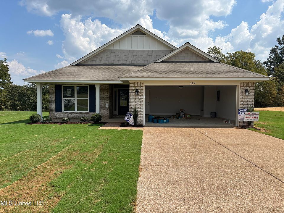 Beautiful Crafstman style 1820 plan. Four Bedroom, 2 Bath with walk in closet in Primary Bedroom. Has formal dining and eat-in kitchen. Kitchen includes staggered cabinetry with crown molding, adjustable shelves and Fridgidaire stainless steel appliances. Open floorplan, with breakfast bar overlooking great room. Separate tub and shower in master bath, and double vanity.