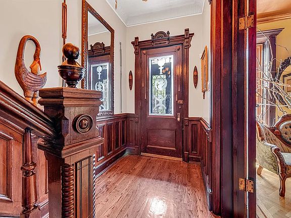 329 Decatur Street is a real gem on one the most iconic blocks in Stuyvesant Heights. This home is filled with original details all throughout the four floors and has been in the same family for almost 40 years. Entering through the parlor floor you are welcomed in with a beautiful banister in it's original color and wood paneling going up the stairs. The living room on the parlor floor has a real brooklyn charm to it with it's original fireplace, shutters and parquet floors. In the rear part of the parlor floor is the primary bedroom with an ensuite bathroom. The garden level has a comfortable sized kitchen with original tin ceiling, cozy family room with a fireplace, and an enclosed sunroom that leads to a gorgeous paved backyard with a gazebo. The third and fourth floor include 3 bedrooms each with a original fireplace, an elegant dining room and kitchen combo, 2 full bathrooms and a spiral staircase leading the rooftop sitting area. It is very rare to see a townhouse like this so well kept and with all or it's original details intact and in original form.