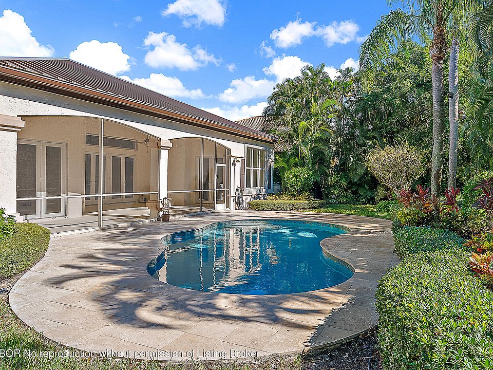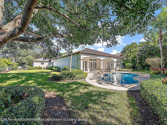 Paradise in Admirals Cove on almost 1/2 acre, with a large side yard to expand or enjoy all that Florida has to offer. This home has 4 bedrooms, 3.5 baths, 2.5 garage, air conditioned workshop that could be a garage or converted to a guest suite, updated kitchen with stainless steel appliances, custom countertops, new roof in 2023 and much much more! Very spacious Primary suite with sitting area overlooking the pool and beautifully landscaped backyard. This home is the perfect blend of function and style.