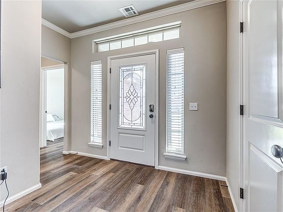 This stunning 3 bedroom, 2 bathroom home is located in the heart of Moore in the gated community of Autumn Oaks and situated on a large corner lot. Walking in, you’ll be greeted by gorgeous floors that encapsulate the living room and kitchen. You’ll also notice the Open Floorplan that is inviting and great for entertaining. The master bedroom is spacious with a gorgeous en suite that includes a double vanity, soaker tub, and a standing shower. This neighborhood also includes a community storm shelter that is located directly across the street from this home. Located minutes from shopping and the highway but feels like it’s away from all the hustle and bustle of city living, this home offers the best of both worlds! Come out and see this beauty for yourself today, you won’t be disappointed!