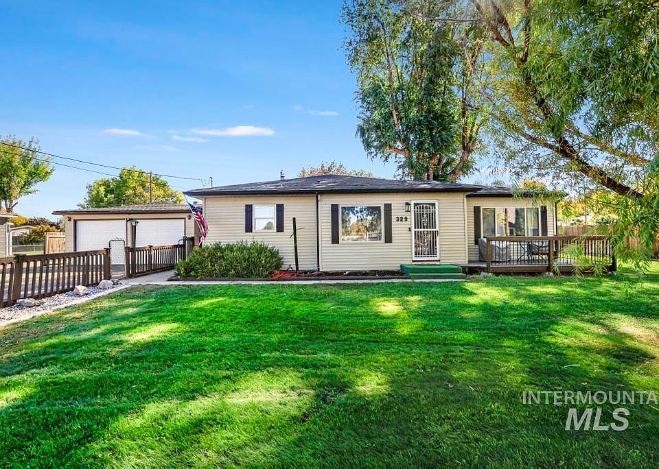 Welcome to 329 Falls Avenue W, a charming mid-century home located in the heart of Twin Falls. This beautifully updated 3-bedroom, 2-bathroom residence offers 1,624 square feet of living space on a generous 0.35-acre lot. Built in 1948, the home features a blend of classic character and modern updates, including laminate and tile flooring and a functional layout designed for easy living. The master suite opens to a private backyard with a covered deck, perfect for relaxing or entertaining. The kitchen is equipped with a freestanding oven/range, dishwasher, microwave, and pantry, and the home includes a washer and dryer for added convenience. A detached two-car garage, RV parking, fully fenced yard with garden space, auto sprinkler system, and forced air heating with wall-mounted cooling complete the package. Located just minutes from the College of Southern Idaho, shopping, dining, and schools, this home offers comfort, space, and a central location ideal for a variety of lifestyles.