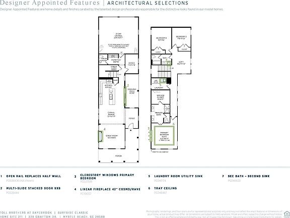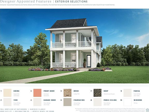 The Surfside blends style and comfort with a floor plan designed for everyday living. A welcoming wraparound porch opens to a spacious foyer and airy main level, where the great room, casual dining area, and kitchen connect effortlessly. The kitchen offers a center island, pantry, and L-shaped counter—ideal for entertaining or family gatherings. Just off the main living area, a covered patio invites outdoor dining and relaxation. Upstairs, the primary bedroom features a tray ceiling, generous walk-in closet, and a private bath with dual-sink vanity, shower, and water closet. Two secondary bedrooms share a hall bath near a versatile loft. Additional highlights include a first-floor office, powder room, everyday entry, and laundry area.