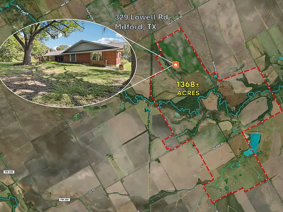 This is more than a home; this is a quintessential Texas estate! When you visit this expansive 1,368± acres, you'll find it all, a family home, grazing pastures, cultivated farmland, hay fields, barns, stock ponds and woodlands. The family homestead is secluded in a treed area with privacy from the road featuring 4 bedrooms, 2 full bathrooms and a two-vehicle garage. Over generations, this estate was created by an assemblage of individual tracts of contiguous land fronting Lowell Rd, Cosby Rd, and Majors Rd with multiple points of access and thousands of feet of frontage. Mill Creek winds through the heart of the ranch and serves as a corridor for deer and native wildlife, offering hunting and recreational activities in the heavily wooded areas where mature pecan tree groves and various hardwood trees reside. Most of the north side of the property is cultivated farmland, the center is wooded creek, and the south side is primarily fenced grazing pastures with stock ponds, barns and cattle pens. The precise configuration and use of land may adjust from year to year. This opportunity offers something for all who appreciates traditional farming, ranching and recreation—making it a true North Texas gem. The Land ID profile is available upon request offering additional details about how these properties are assembled and their respective boundaries. The new boundary survey is in the works and is expected to be available for review by the end of October.