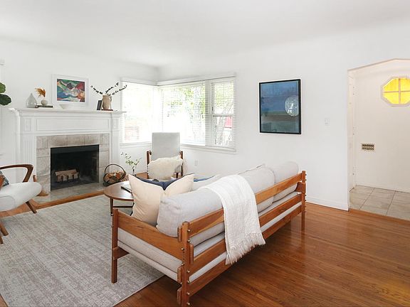 Cozy fireplaceEnclosed sun porchLarge roomsUnique architectural detailsOversized front porchMid century character residenceFormal dining room