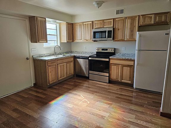 **AVAILABLE AUGUST 1** 2 bedroom, 1 bath apartment in north Golden. Walking distance to downtown Golden and Colorado School of Mines. Newly renovated kitchen, newer carpet and paint throughout, window A/C. Great mountain view from the bedrooms and the deck. Washer/Dryer hookups. Existing washer and dryer available for use. Top floor unit of 2 story building with one flight of stairs. 2 reserved parking spaces, 1 covered. Owner pays water, sewer, and trash