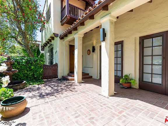 1920's Spanish-style residence with generous front porch, in renowned Hancock Park! A perfect blend of authentic character and designer redone kitchen and baths. Formal entry into a dramatic foyer with a graceful winding staircase and decorative wrought iron. Beautiful tile and polished hardwood floors flow throughout. Spacious cathedral-ceiling living room featuring exposed beams and a big fireplace. Soft recessed lighting enhances the warm ambiance. Large dining room capable of accommodating intimate or grand entertaining. Four good sized bedrooms and three and a half tastefully renovated bathrooms. Elegant primary suite offers an expansive walk-in closet and a luxurious ensuite bathroom. Additional space upstairs suitable for an office or playroom. Convenient maid's quarters, additional bathroom, and bright breakfast room. The Modern chef's kitchen is large with a generous center island and abundant storage. Separate laundry room. Serene, lush green yard is like a park with a beautiful mature Elm tree and complete privacy. Rear garage now finished as an office, gym, or playroom with yet one more smaller room both with separate entrances. Outdoor deck accessible from the kitchen and the living room provides intimate space for outdoor entertaining and dining. Equipped with a Ring security system, electric vehicle charging station, and alarm system. The converted garage is not included in the square footage. The property is located in the Hancock Park Historic Preservation Overlay Zone. Trust sale, as is.