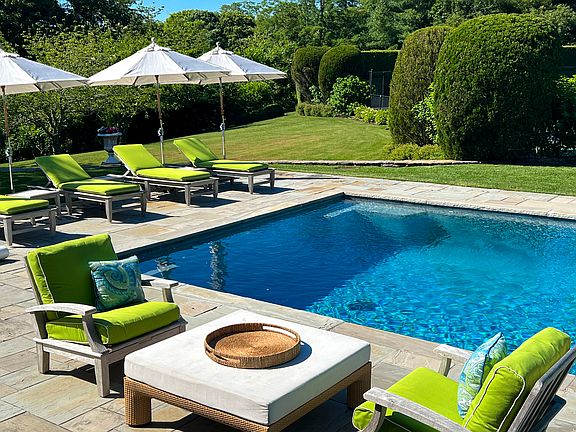 Rental Registration #: RP201381 This 6,000 s.f. gated grand and spacious residence with both tennis and pickleball has been totally updated and features 5 bedrooms with 5.5 baths and is sited on 1.84 secluded acres, surrounded by reserves on two sides for complete privacy. As you enter the grand double-height entryway into the house, you will find a large living room with fireplace and a formal dining room both with coffered ceilings. Off the foyer, the great room with fireplace is fringed by two French doors to the covered bluestone patio. The fully equipped kitchen is open to the great room, with light filled double height breakfast room. There is a generous den and a first-floor junior suite with direct access to the backyard. A powder room, butler's pantry with double wine coolers, 2 laundry machines and three-car heated garage complete the first floor. Upstairs there is a gorgeous primary suite with spa bath, steam shower and private balcony which overlooks the grounds. Three additional guest suites, bonus room over the garage and 4 machine laundry complete the second floor. The manicured backyard blooms around both covered and uncovered bluestone patios overlooking the heated saltwater pool, spa, pool house with Peloton and hand-weight, outdoor shower and all-weather tennis, with pickleball lines and basketball net! 5-7 minute access to the villages of Southampton, Water Mill and Bridgehampton with their famed ocean beaches. A Hamptons home you will not want to miss! Available for US OPEN! [[Rental Registration # RP201381]]
