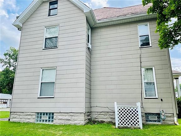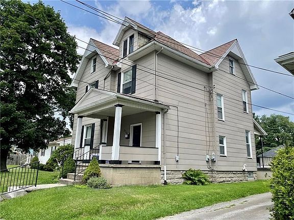 Three story DUPLEX home with newly painted exterior, new windows and long term renters on both first and second floor. First floor consists of large living room, large bedroom, full bathroom and equipped kitchen with extra storage and pantry. Second floor is totally remodeled with two bedrooms, full bathroom, kitchen and access to walk up attic. Individual laundry hook ups are located in basement so that each tenant can use their own washer and dryer. New shelving in basement offers plenty of storage area. Large detached 2 car garage with electricity is currently being used by landlord as maintenance shed. Basement has half bathroom that landlord can access from outside while doing maintenance or yard work. New hot water tank and newer furnace. Large flat backyard and off street parking. Tenants pay own electricity.