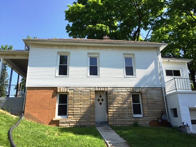 Immediate occupancy is offered on this freshly redecorated home in Adrian. Three bedrooms, one bath, beautiful kitchen with island and eating space, laundry room, large enclosed front porch and two car attached garage. Exterior is vinyl and brick with vinyl replacement windows. Separate 24' x 11.8' workshop. Property has frontage on the Raisin River. Faust Real Estate, LLC Adrian, MI F-618