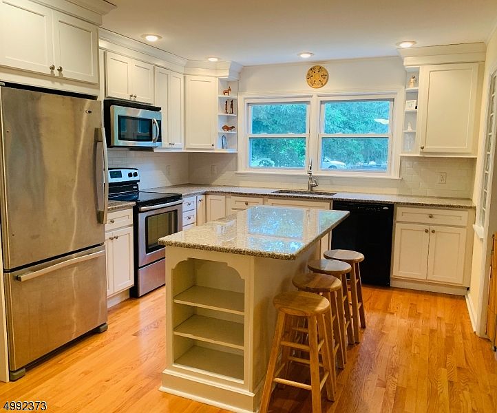 This lovely spacious 4 Bedroom Cape Cod has been updated while preserving its original charm. Gorgeous white kitchen w/ granite countertops, SS Appliances, and center island. Beautiful HW floors. Large formal dining room and formal living room, perfect for entertaining. First floor family room is great for relaxing w/ wood burning fireplace. Features a walkout full basement w/ kitchen and Rec Room w/ 2nd woodburning fireplace. Possible mother-in-law suite or home office. 2nd floor Master Bedroom Suite with huge sitting room attached, which could also be used as an additional bedroom. Newer Roof in 2019. 2 car detached garage and additional circular driveway. Private backyard backs up to forest conservation. Blue Ribbon schools. Easy commute to Rt 94 and Rt 206 and close to shopping.