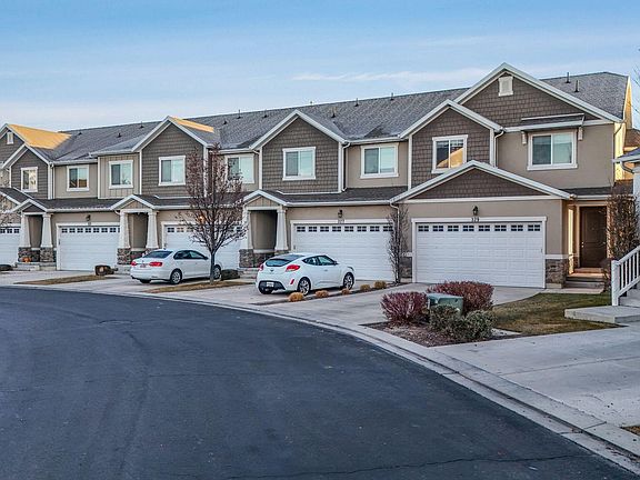 Nestled in the heart of Lehi, this stunning end unit boasts an abundance of modern updates. The beautifully designed kitchen features upgraded quartz countertops with custom backsplash, high end appliances and offers plenty of storage. Open floor plan with oversized primary bedroom that features vaulted ceilings, a huge walk in closet, ensuite bath with dual sinks. The fully finished basement offers extra space for entertaining and gathering with large family room and bathroom. New carpet being installed in basement. Private backyard that backs to community pond. No neighbors behind you. The driveway is the largest in the neighborhood and can accommodate up to 4 parked cars in addition to the 2 car garage so your friends or family can conveniently park. HOA amenities include access to clubhouse, community park with outdoor basketball court, large open playing field, snow removal, landscaping and insurance. Incredible location!! 2 minutes from Macey's grocery store and two different 1-15 on-ramps. Close to Costco, Walmart, Target, lots of restaurants and other shopping. Minutes from Thanksgiving Point and the heart of Silicon Slopes.