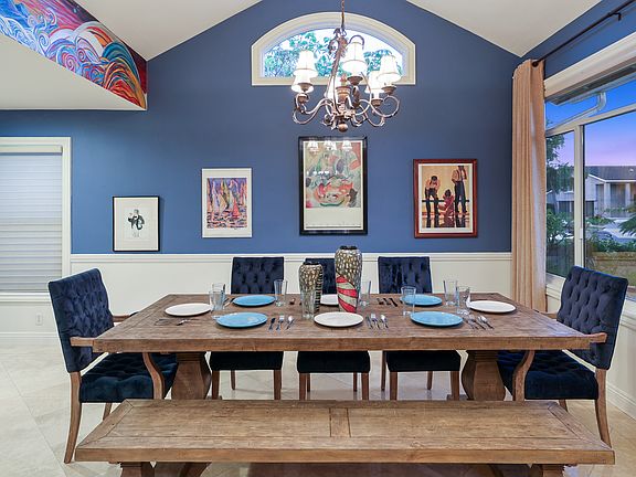 Twinkle lights adorn the back perimeter of the property making your evenings nothing less than magical as you enjoy the sunset while taking a hot tub soak under the palm trees listening to the sounds of the waterfall fountain and enjoying your firepit. Complete with lemon trees and an herb garden, this property is a natural draw for a variety birds and wildlife. If you feed them, they will come. Artificial pet friendly turf in backyard provides beauty and functionality for you and your family. Plenty of space to move around and find solace, even the largest of families enjoy privacy in the many living areas, both inside and out.