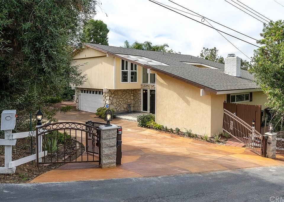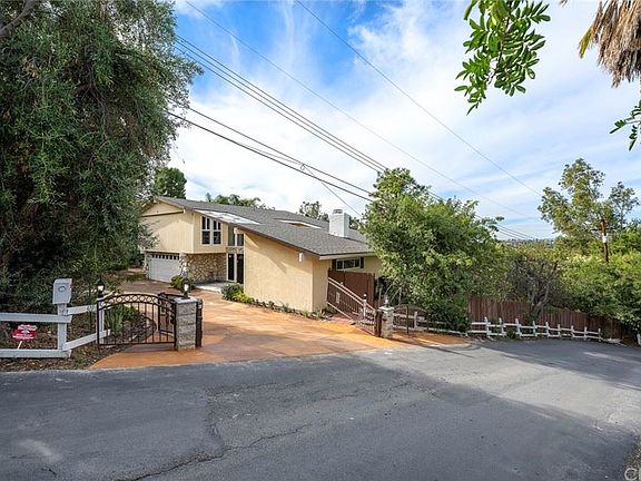 This hidden gem is located on a 1/2 acre lot in a rural feeling area tucked away in Anaheim Hills. This is the perfect home to get away from the city life and escape to your own oasis. Stunning city light & sunset views! 4 bedrooms + a den, 1 bedroom down is perfect for guests or elders with a full bathroom next to the bedroom. All one level downstairs for the exception of 1 small step off the kitchen. Large living room/family room w/dual sided stone fireplace. The master suite is has its own retreat enhanced by a wall of glass, the master bathroom has his & hers seperate showers. Lots of natural light throughout this entire home. Newer laminate wood floors throughout, each room has its own temperature controled mini split ac/heat + electric heat in the ceilings throughout the home, each room has its own temp control. Brand New Interior Doors, Brand New Roof, Brand New Mirror Wardrobe Doors, Brand New Hall Chandelier & Brand New Oven. Dual paned windows, remodeled baths & kitchen w/granite counters. If you enjoy gardening the yard will be your heaven, completely flat lower level would be perfect for an ADU, pool or more parking including RV. There is an access gate to the lower level. The city has plans to terminate the electric wires and put them underground.