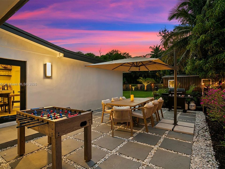Oversized islandSpa-quality finishesPotential for a poolQuartz countertopsFenced backyardModern tile workCustom cabinetry