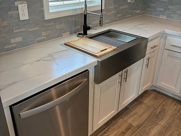 Screen porchIsland kitchenRangehood microwave upgradeFarmhouse sinkDoor upgradesStainless steel appliancesTile backsplash