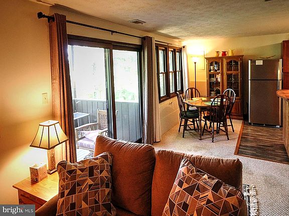 Hurry! This 2 BR, 2 BA condo at The Hill at Bryce Resort is looking for a new owner to enjoy all the Valley has to offer. New kitchen appliances, new flooring in the kitchen, a new island, energy efficient windows and doors throughout and ALL FURNISHINGS CONVEY and the HOA fee includes water and sewer! Walk to Lake Laura or take a 5 minute drive to the main lodge, golf course, ski slopes and biking trails. A heat pump in the winter and central AC in the summer make this a year round getaway! Winter views of Great North Mountain to the west and in summer you can enjoy the trees and cool mountain breezes. This ground floor unit is just a few easy steps from the parking area and is furnished to sleep 5 comfortably. This could be the one! Don't miss it!